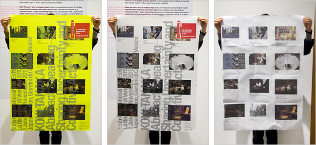 Video and photo documentation of the installation at the Japan Pavilion, or the information of the official exhibtion catalogue. Download venue leaflets here.