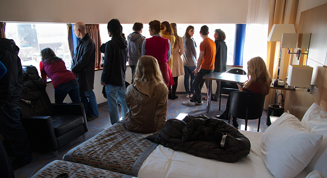 16.7mというのは公式に発表されている3.11の地震で起きた津波の高さだ。ビルにすればだいたい6階建てぐらいだろうか。シンガポールのアーティストHeman Chongに誘われてwitte de withでの彼がオーガナイズする年間企画「moderation(s)」の中、「A Thing At A Time」という週末イベントのひとつとしてこのアイデアを考えた。参加者はwitte de withのエントランスに集まり、ぼくからの簡単なイントロダクションを聞き、その後、歩いて5分ほどのロッテルダム市内のホテルを訪れた。非常階段を登り、大きな窓のある部屋の中で景色を眺めながら、「高さ」についての少し抽象的な話を聞く。部屋の床はちょうど偶然16.7mという高さの位置にあり、さらにぼくは、東京大学のリサーチャーが発見した21.1mという水の痕跡についてや43.3mという遡行高についても伝えた。ただ「津波」や「地震」、「日本」という言葉は使わなかった。具体的な情報によってぼくらはものごとを峻別する。これは自分に関係があることであり、あれは自分には関係のないことだと。しかし抽象的な情報には不安が残るだろう。それはもしかすると自分に関係のあるものごとであるかもしれないのだから。