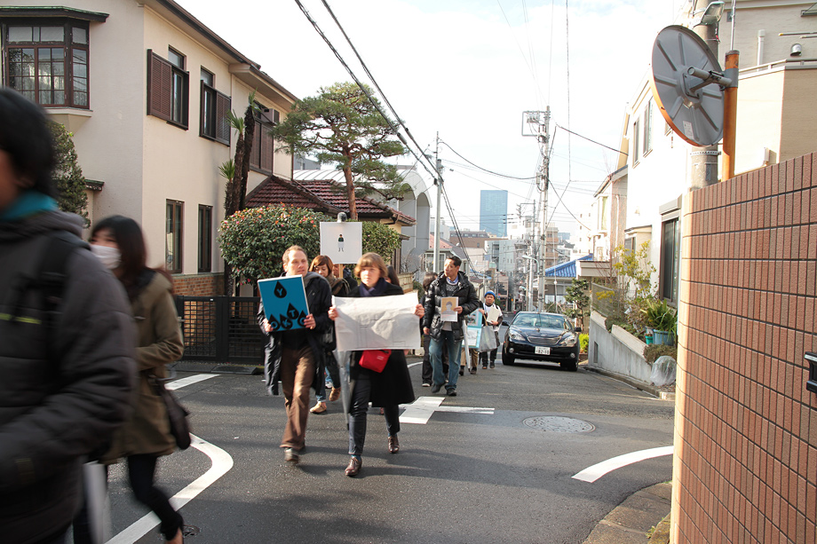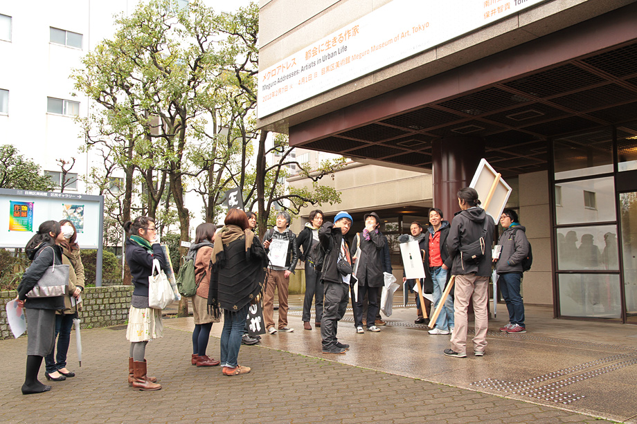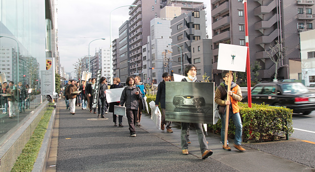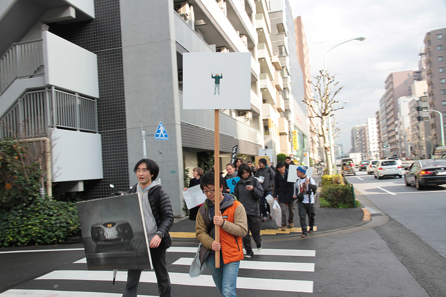 In this sense I propose an event that involves walking outside and showing a painting as a sort of protest. Let us counter the image of the artist/painter in Japan as not social or political by going out into the streets. Because now we know the political meaning of making a painting, or rather the painting itself.
